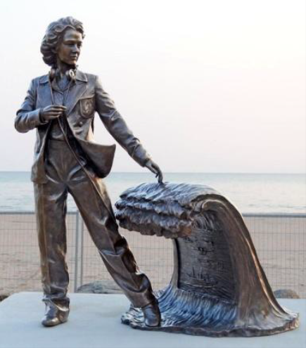 Hun hadde en god og trygg barne- og ungdomstid i Cobourg i Canada. Hun drev aktivt med friluftsliv inkludert jakt og fiske. Ofte sto hun på stranden ved Lake Ontario og drømte om fjerne land bak horisonten. Det er der det nå står en skulptur som viser henne som telegrafist. Den ble avduket i 2020. Skulpturen heter «Make Waves» fordi hun skapte bølger - både radiobølger og kvinnefrigjøringsbølger.